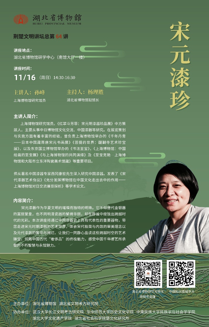 讲座内容简介:宋元漆器作为华夏文明的璀璨而独特的明珠。它不似唐代金银器的富丽堂皇,也不同明清瓷器的繁缛华丽,却在静谧中绽放出跨越时代的光彩。