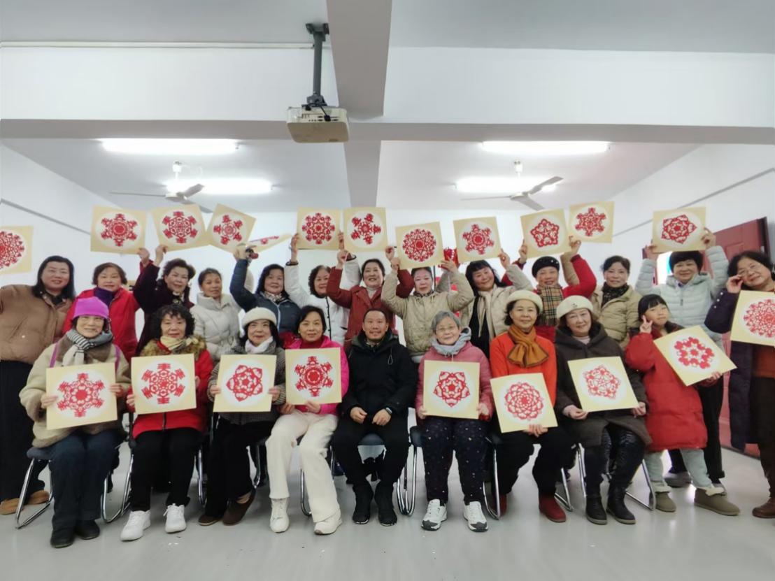 湖北省博物馆组织武汉剪纸省级非物质文化遗产代表性传承人、湖北省工艺美术大师蔡骁龙以及郭易潍、余钊岑三位老师与社区居民一同以一把剪刀、一方红纸为媒,将非遗剪纸技艺与家风文化相融,让社区居民在家门口感受传统年俗与指尖艺术的双重魅力。