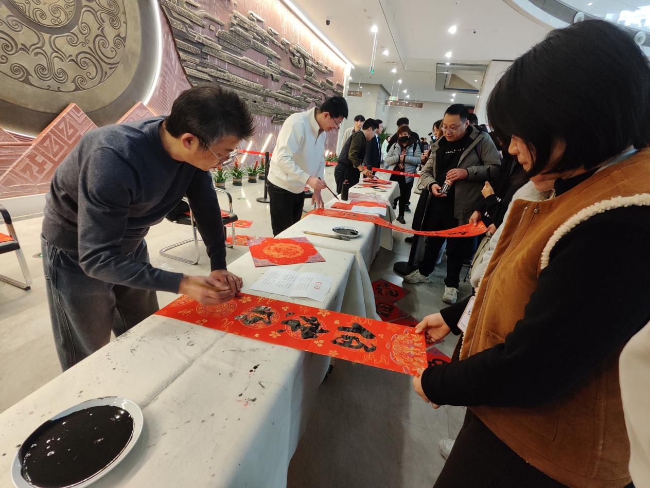 持续两小时的活动共送出春联百余幅、“福”“喜”字近百张。笔墨勾连古今,秦简的庄重与春节的喜庆相映成趣,为观众带来一场融合传统韵味与文化传承的生动年味体验。