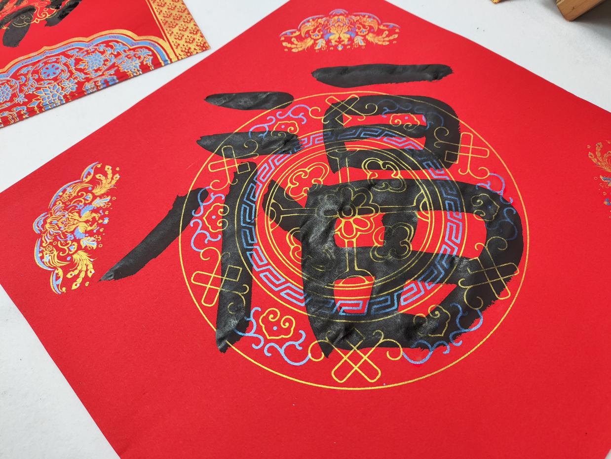 本次活动特别融合文物活化理念,所书字形源自湖北省博物馆云梦睡虎地秦简。两千多年前的秦隶墨迹穿越时光,融入红纸,将先民对吉祥安康的质朴祈愿化为新春祝福。
