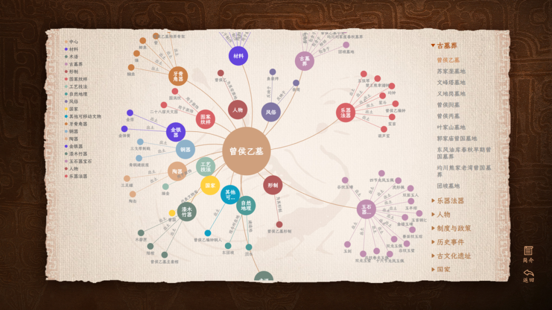 在呈现形式方面,该出版物采用交互式电子出版物模式,涵盖图、文、声、像等多媒体形态;在交互拓展方面,创新性融入“知识图谱”,将分散的人物、事件、文物等进行了关联与整合,清晰勾勒出历史发展的脉络;在包装设计方面,以曾、楚文化中标志性的黑、红两色为主色调,结合曾侯乙墓出土器物纹样与意象,构建兼具历史厚重感与艺术张力的视觉语言,体现其“热烈奔放、生生不息”的精神内核。读者可根据兴趣自由点选、查阅、观看与聆听,实现非线性、个性化的阅读路径,享受立体、生动、便捷的沉浸式知识获取体验。