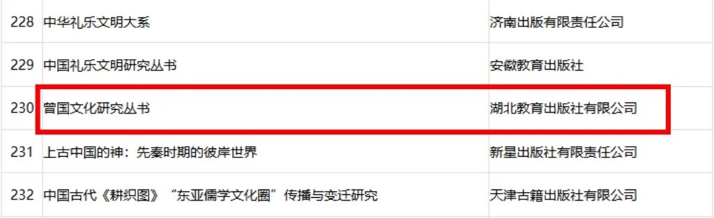 近日,国家出版基金规划管理办公室公布了2025年度国家出版基金资助项目名单,湖北教育出版社拟于明年出版的《曾国文化研究丛书》入选。