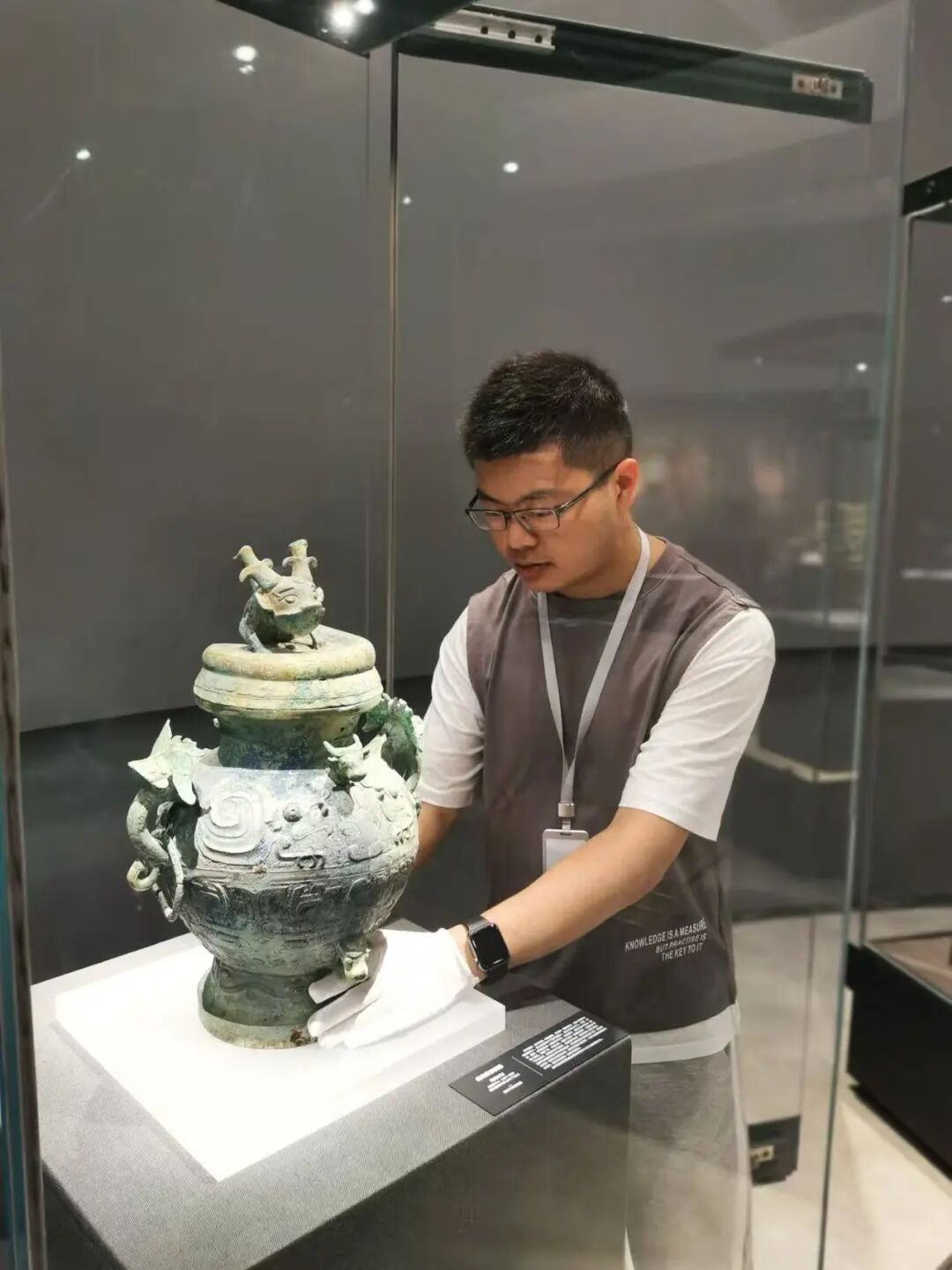 2021年6月,廖航在盘龙城遗址博物院开展“长江万里青——长江流域青铜器精品展”布展工作